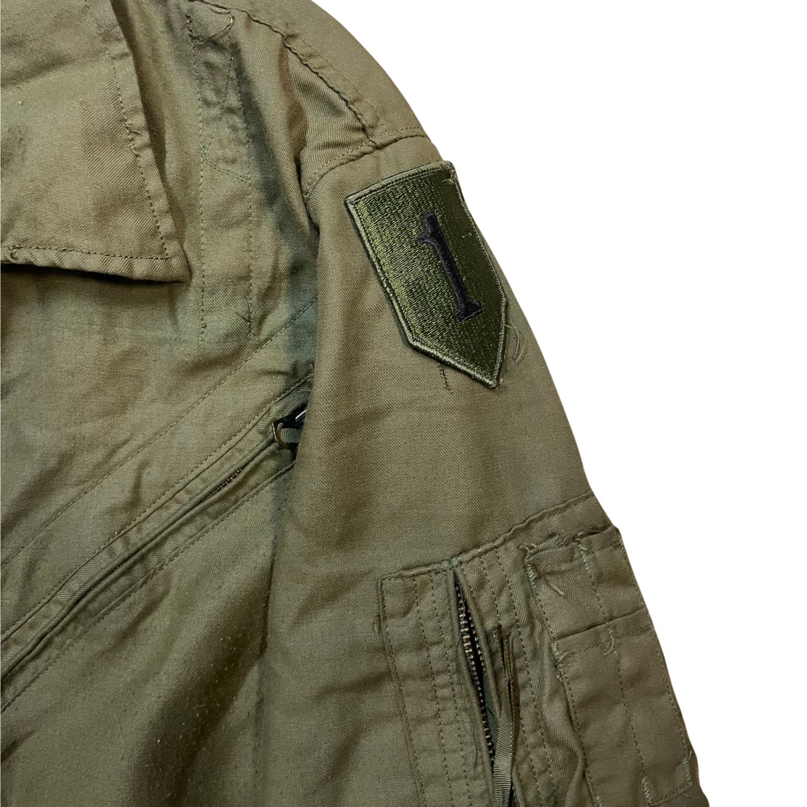 Az overál a modern katonai repülés és páncélos hadviselés egyik legikonikusabb darabja, amely az 1970-es évek óta szinte változatlan formában szolgálja a NATO erőket. Különlegessége az Nomex szövet, amely nem olvad és nem táplálja az égést, így kritikus másodperceket biztosít a menekülésre egy esetleges tűz esetén. A képen látható példányon az amerikai 1. gyalogoshadosztály „The Big Red One” felvarrója látható, ami jelzi, hogy az ruhát egy páncélozott jármű parancsnoka használhatta. Ez a ruhadarab nem csupán egy egyenruha, hanem egy technikai védőeszköz, amely évtizedek harctéri tapasztalatai alapján nyerte el végső, funkcionális formáját, ahol minden cipzárnak és varrásnak meghatározott célja van a túlélés érdekében.