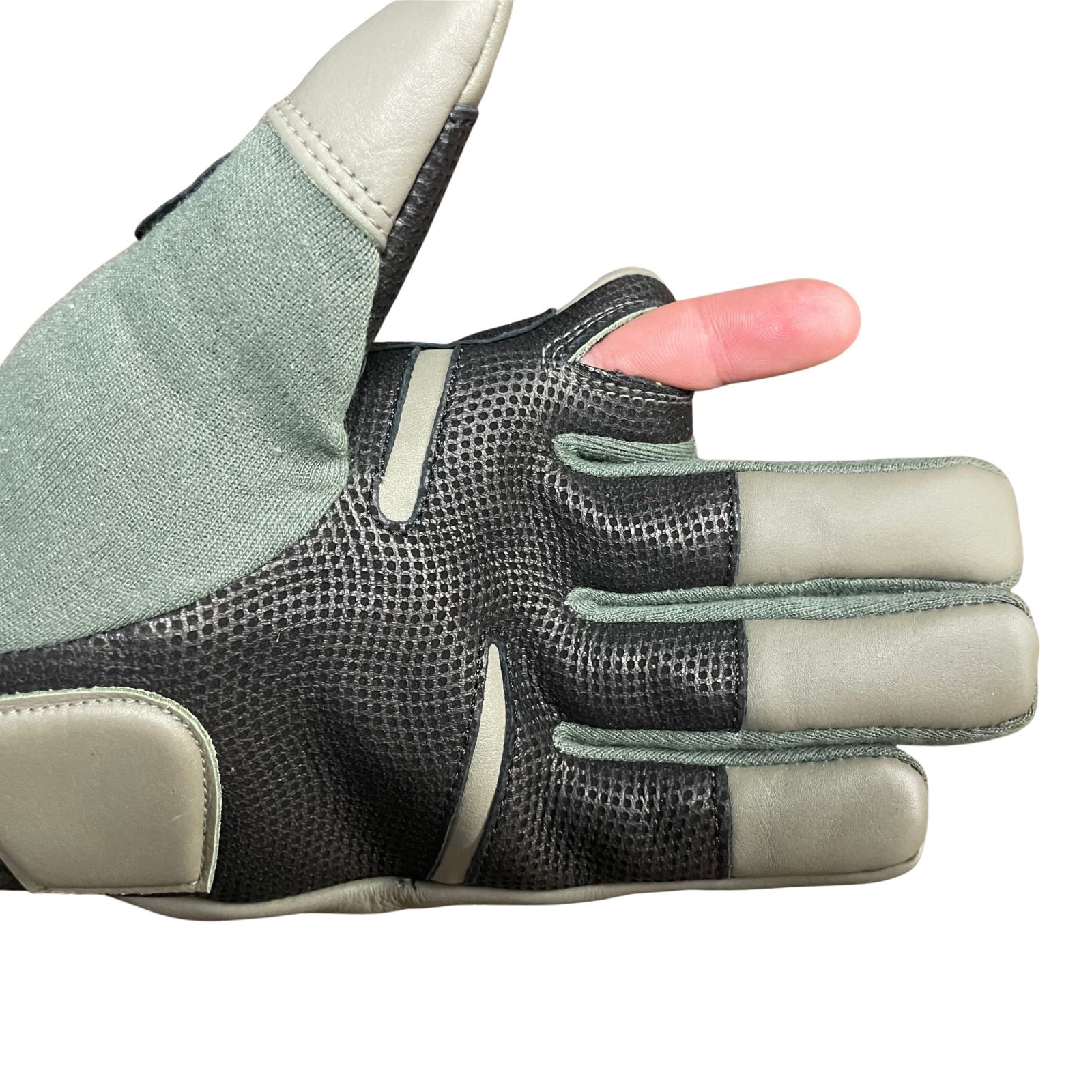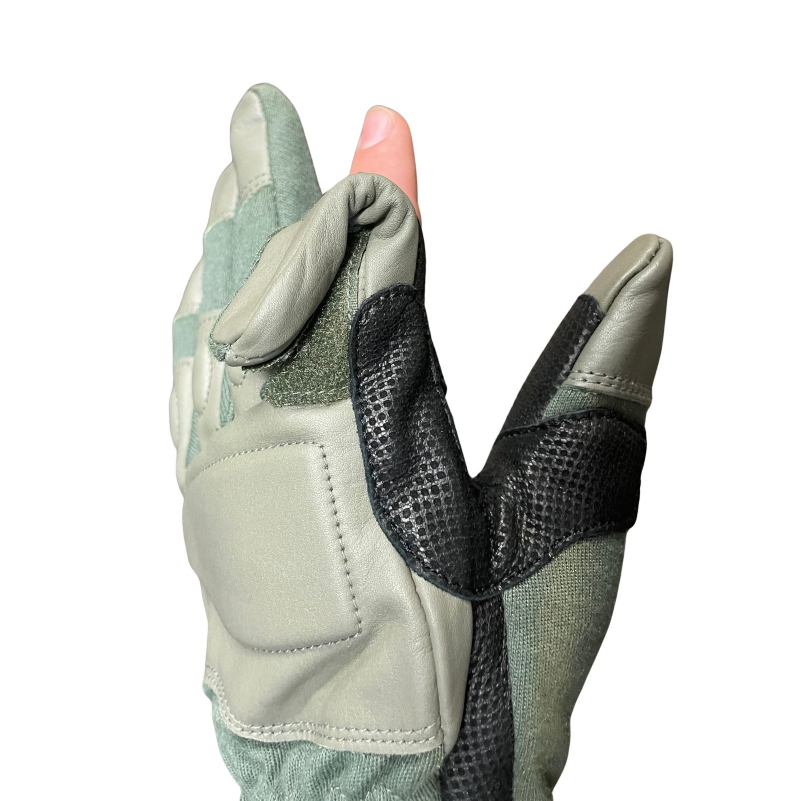 A kesztyű kiemelkedő tulajdonsága a mutató- és középső ujjakon kialakított visszahajtható ujjvég. A tépőzárral rögzíthető megoldás lehetővé teszi a katona számára, hogy a precíziós feladatokat (például érintőképernyő kezelése, finom beállítások a fegyverzeten vagy rádión) anélkül végezze el, hogy le kellene vennie a teljes kesztyűt. A kézfejen és az ujjakon elhelyezett puha, ütéselnyelő protektorok megvédik a kezet a mechanikai behatásoktól és sérülésektől anélkül, hogy korlátoznák a mozgásszabadságot. A csuklórész gumírozott és bővített kialakítása biztosítja a stabil illeszkedést és a törmelék bejutásának megakadályozását.
