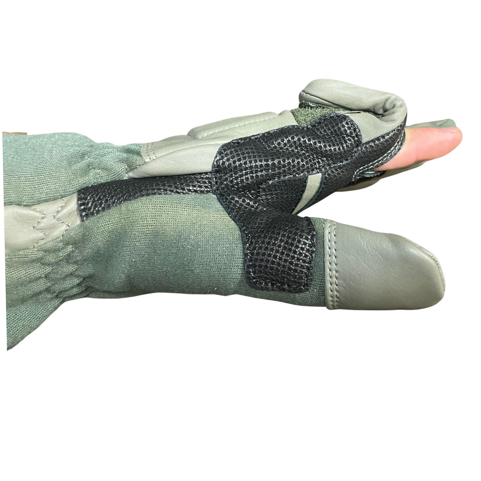 A 2019M lövészkesztyű a modern hadviselés igényeihez fejlesztett védőeszköz, amely a Magyar Honvédség jelenlegi felszerelési rendszerébe illeszkedik. A kesztyű felső része lángálló meta-aramid anyagból készült, amely magas hő- és vágásállóságot biztosít a kézfejnek. A tenyérrész és a kritikus pontok finom, de rendkívül strapabíró zöldes-szürke bőrből készültek, ami kiváló tapadást és fogásbiztonságot garantál a fegyverkezelés során.