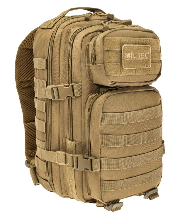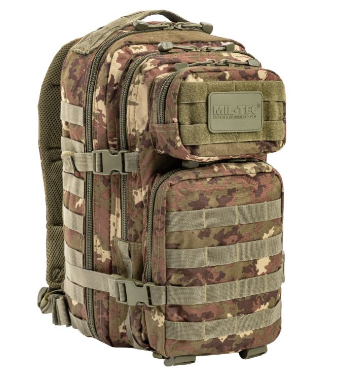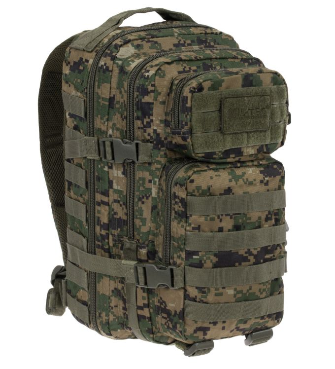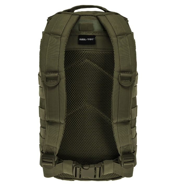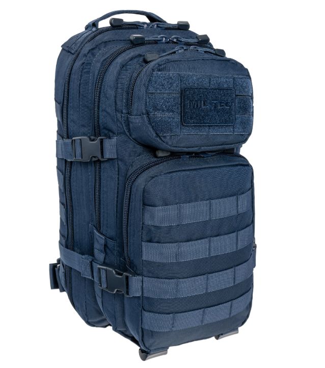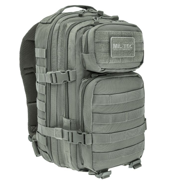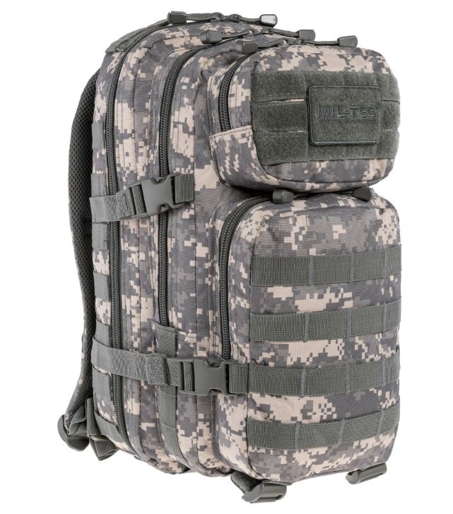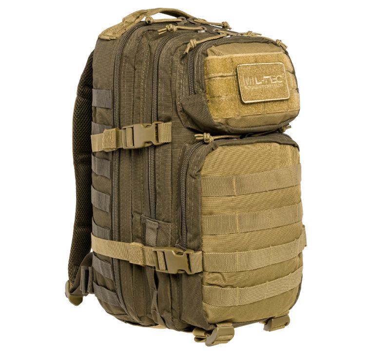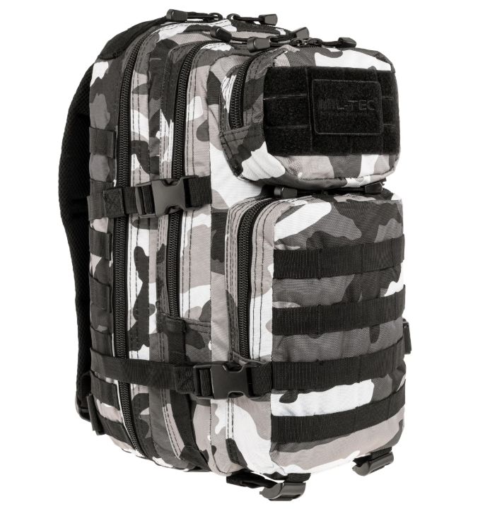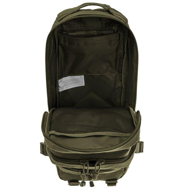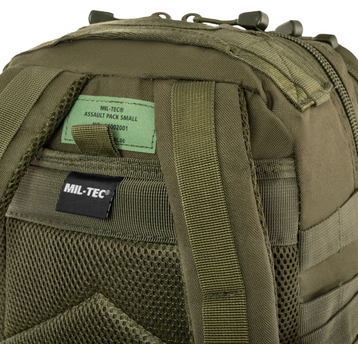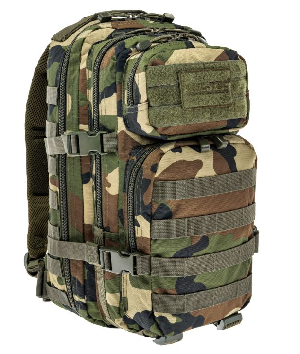 A Mil-Tec Assault Pack Small a népszerű katonai hátizsák-sorozat kisebb méretű változata, amely megőrzi a nagy testvér minden funkcionális előnyét, de könnyebb és mozgékonyabb kivitelben. A 20 literes kapacitás ideális az alapvető felszerelések (EDC - Every Day Carry) tárolására: két nagy főrekeszre és két elülső zsebre oszlik, amelyekben külön hálós és cipzáras rendszerezők segítik a kisebb tárgyak elhelyezését. A hátizsák külső felületét végig MOLLE-rendszerű hevederzet borítja, így kapacitása külső tokokkal és zsebekkel tovább bővíthető.
