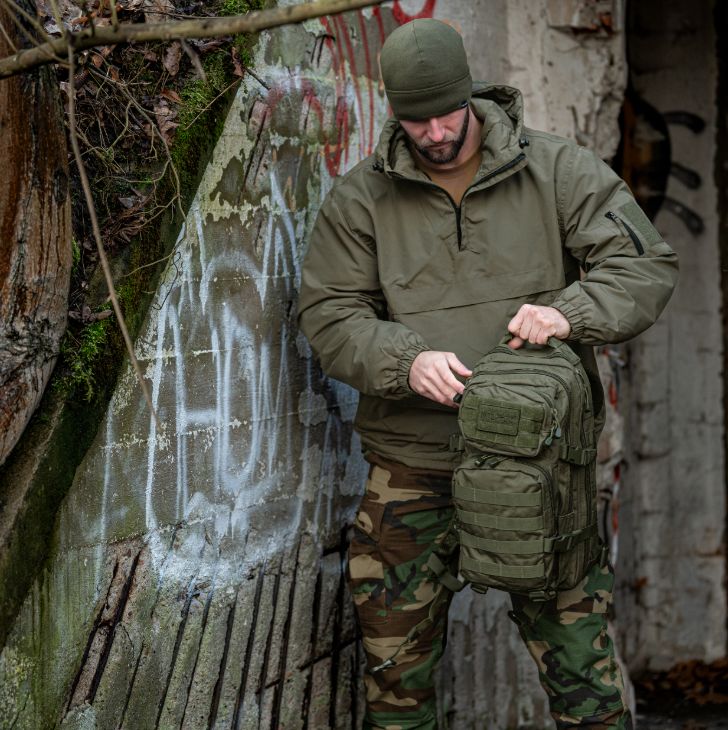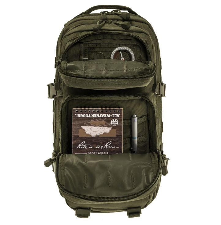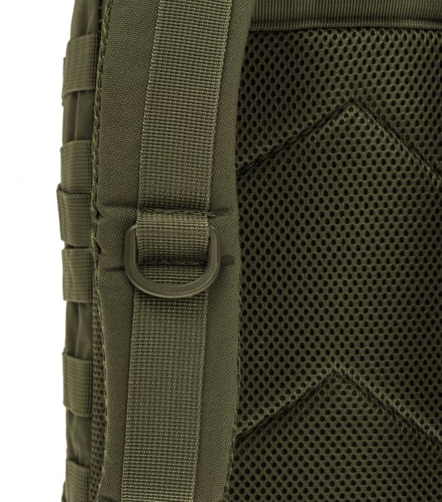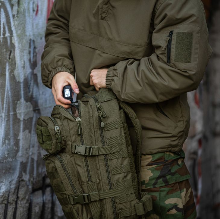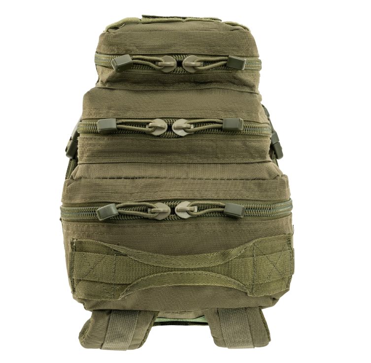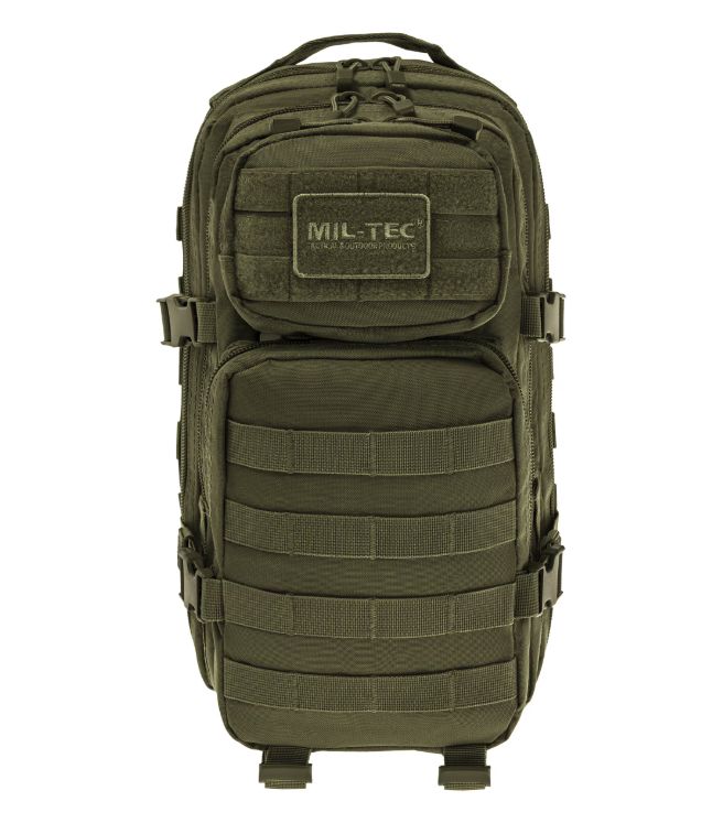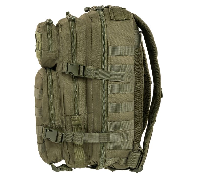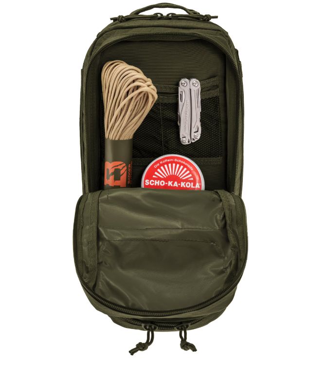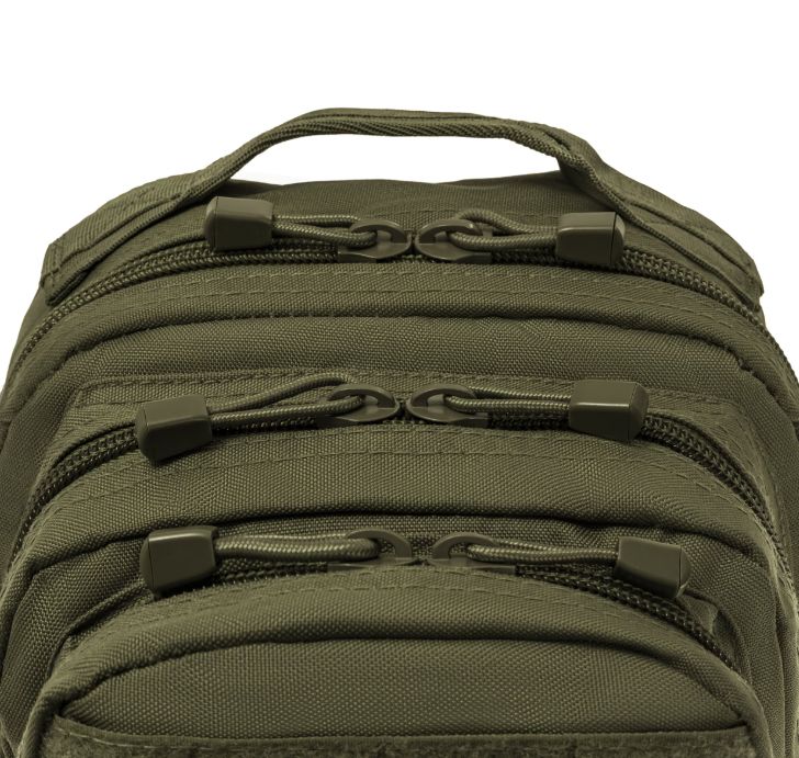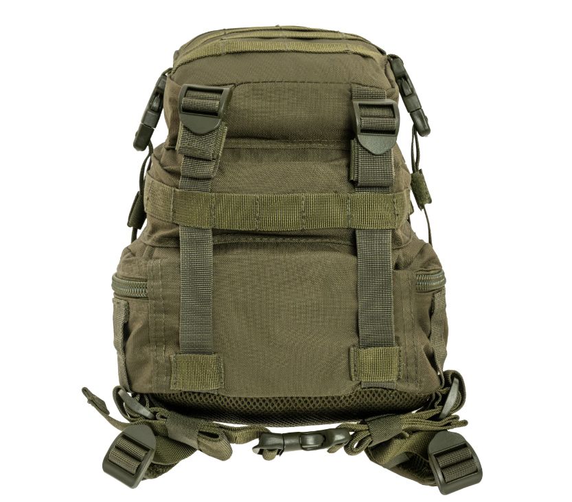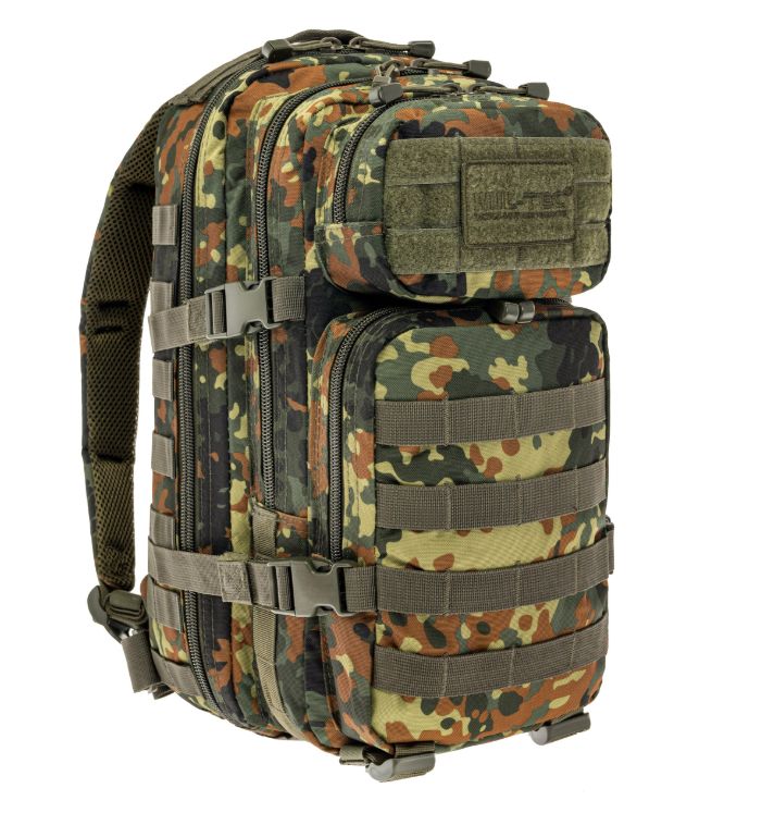 A Mil-Tec Assault Pack Small a népszerű katonai hátizsák-sorozat kisebb méretű változata, amely megőrzi a nagy testvér minden funkcionális előnyét, de könnyebb és mozgékonyabb kivitelben. A 20 literes kapacitás ideális az alapvető felszerelések (EDC - Every Day Carry) tárolására: két nagy főrekeszre és két elülső zsebre oszlik, amelyekben külön hálós és cipzáras rendszerezők segítik a kisebb tárgyak elhelyezését. A hátizsák külső felületét végig MOLLE-rendszerű hevederzet borítja, így kapacitása külső tokokkal és zsebekkel tovább bővíthető.