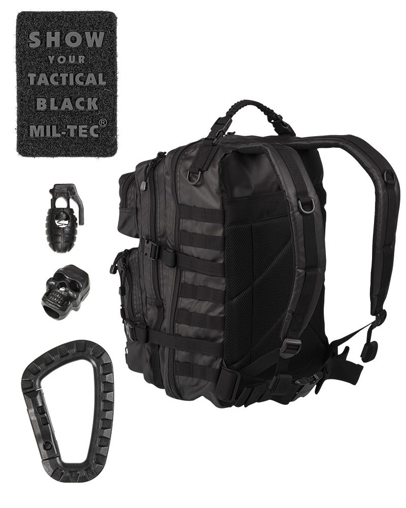 Mil-Tec US Assault Tactical Black taktikai hátizsák – kicsi és nagy változatban
