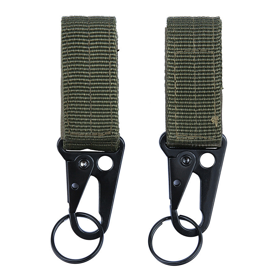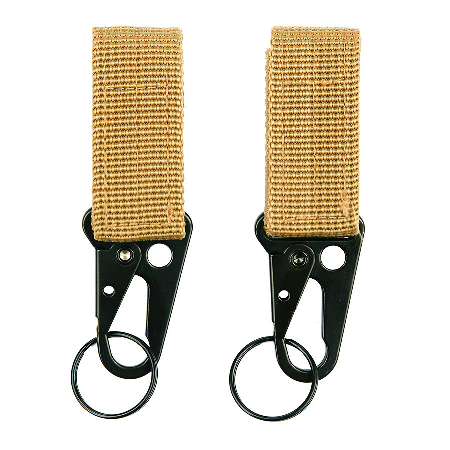 Rugós acél karabíner 2,5cm széles tépőzáras heveder darabon. Kiválóan alkalmas betoldani olyan fegyverszíjakhoz amiknek nincs saját karabínere. Övön hordva kulcstartónak is használható.