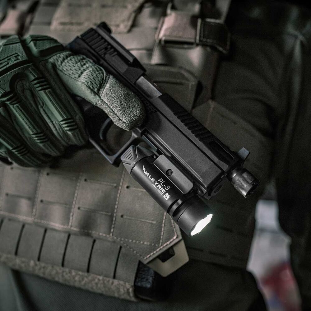Az Olight PL-3 Valkyrie a sorozat alapmodellje, amely az "R" változattal ellentétben nem beépített akkumulátorral, hanem két darab CR123A elemmel működik, ami különösen hasznos olyan terepviszonyok között, ahol nincs lehetőség azonnali töltésre. Szerkezetileg szinte megegyezik a testvérével: megkapta a rugalmasan állítható sínadaptert, amely biztosítja a kompatibilitást a MIL-STD-1913 és a Glock sínekkel is, valamint a robusztus, eloxált alumíniumvázat, amely bírja a fegyver visszarúgását és a zordabb behatásokat is. Ez a modell azokat célozza meg, akik a hagyományos elemes tápellátást preferálják a megbízhatóság és a gyors "üzemanyag-csere" lehetősége miatt.