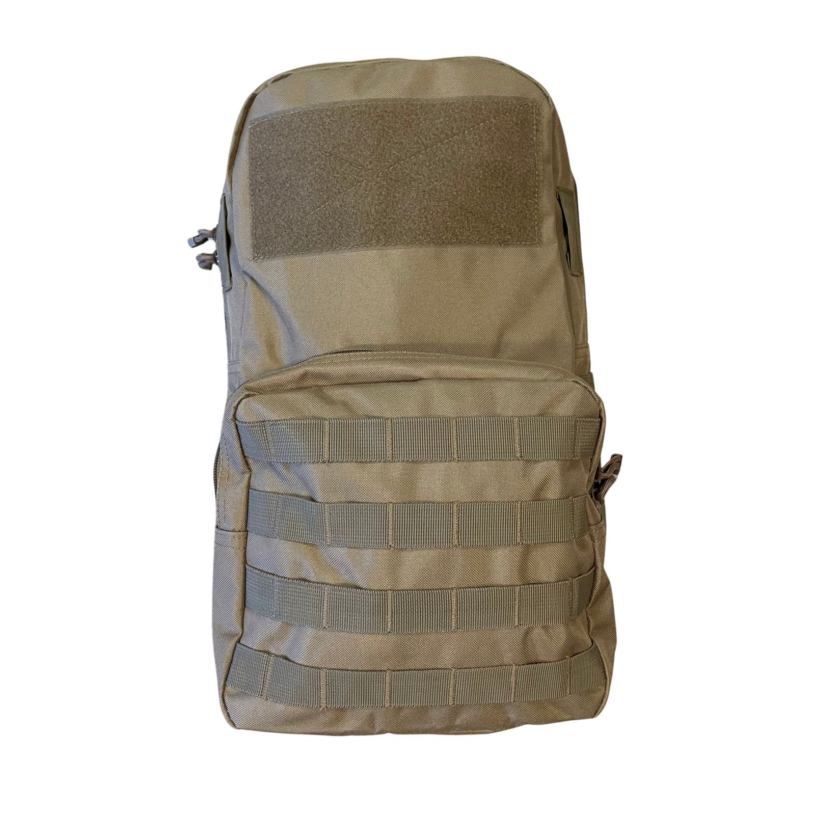 A táska elsődleges funkciója, hogy a MOLLE-pántok segítségével közvetlenül a taktikai mellény hátára rögzíthető, így extra tárolóhelyet biztosít ivózsáknak, lőszernek vagy orvosi felszerelésnek anélkül, hogy külön hátizsákot kellene felvenni. Különlegessége a hibrid kialakítás: ha nincs szükség a mellényre, a beépített vállpántok segítségével önálló kishátizsákként is funkcionál. A főrekesz mellett egy kisebb külső zseb segíti a rendszerezést, az elején található nagyméretű tépőzáras (velcro) felület pedig azonosítók és felvarrók elhelyezésére szolgál. Az oldalsó MOLLE-sorok további zsebek felfogatását teszik lehetővé, a Coyote szín pedig kiválóan illeszkedik a legtöbb modern sivatagi vagy terepszínű felszereléshez.