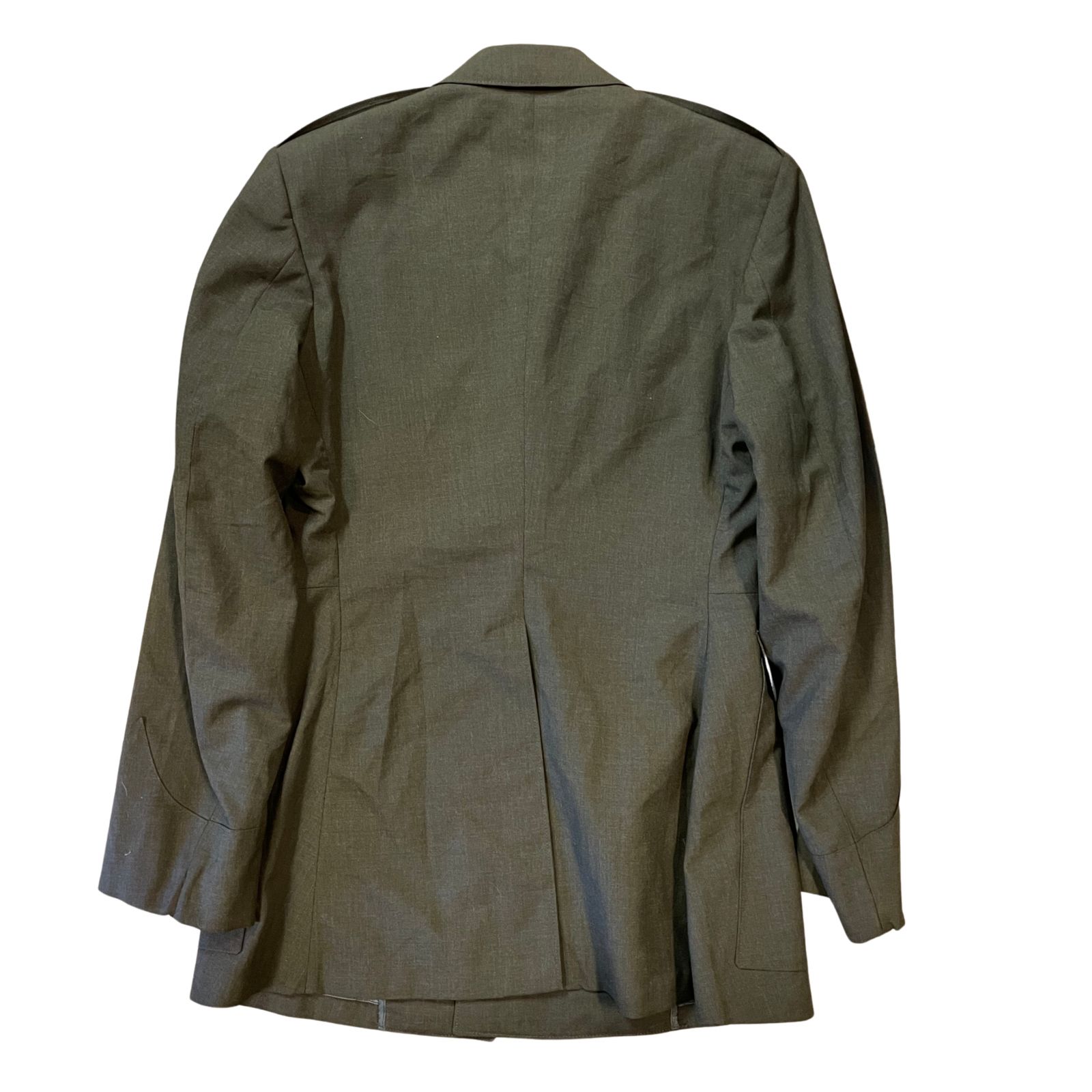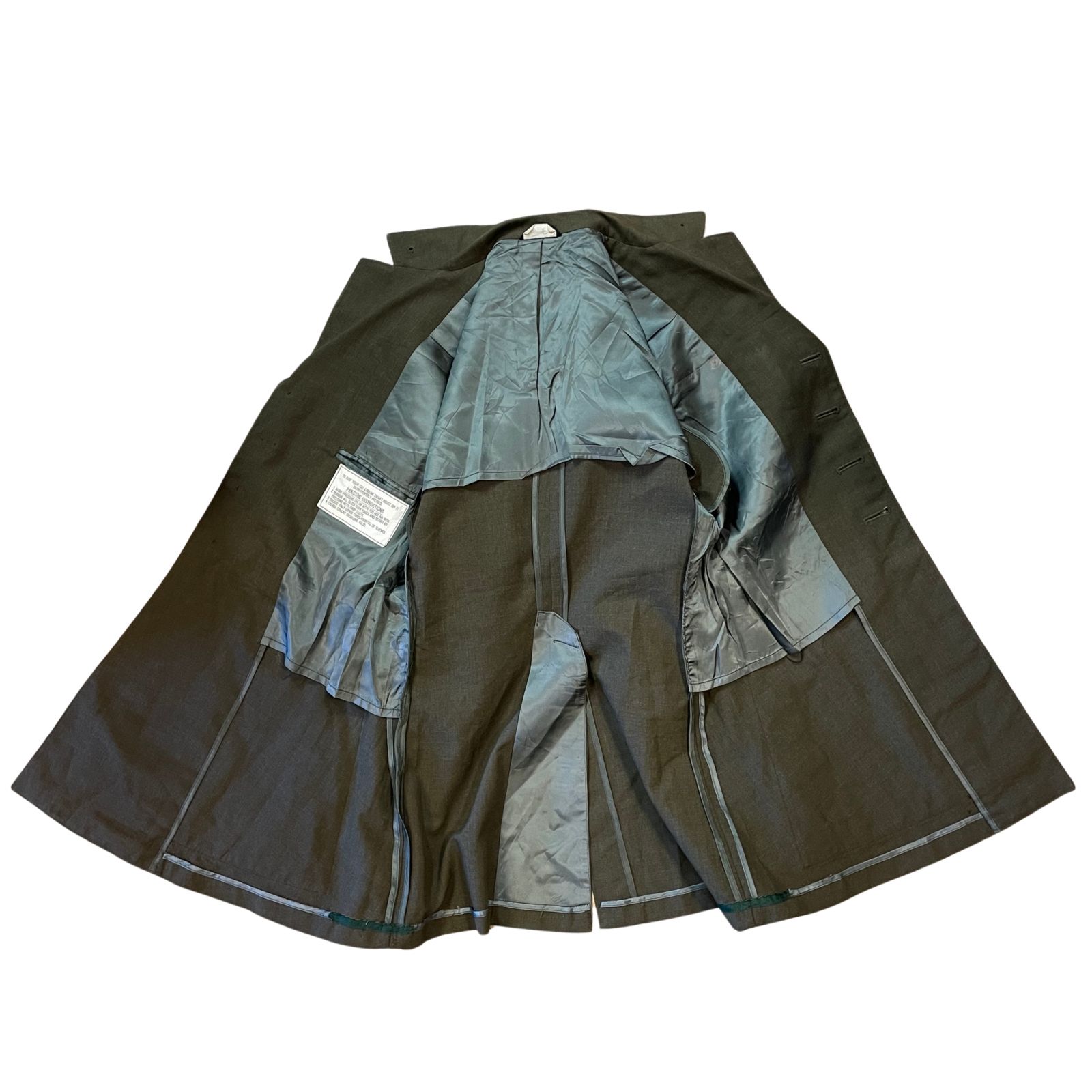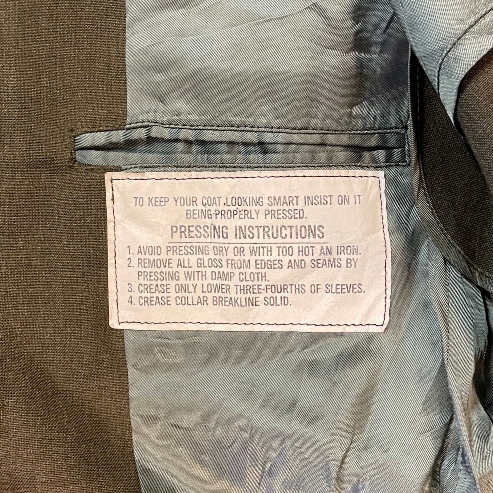 A zubbony belső része selymes tapintású bélést kapott a kényelmes viselet érdekében, és tartalmazza az eredeti kezelési útmutatót ("Pressing Instructions"), amely a katonai precizitású vasalási előírásokat taglalja. A hátoldalon található középső hasíték és az övvezetők a pontos, katonás illeszkedést segítik elő. Ez a ruhadarab nem csupán egy egyenruha, hanem a tengerészgyalogság büszke történelmének és fegyelmének szimbóluma, amely kiváló darabja lehet bármely militária gyűjteménynek vagy hagyományőrző felszerelésnek.